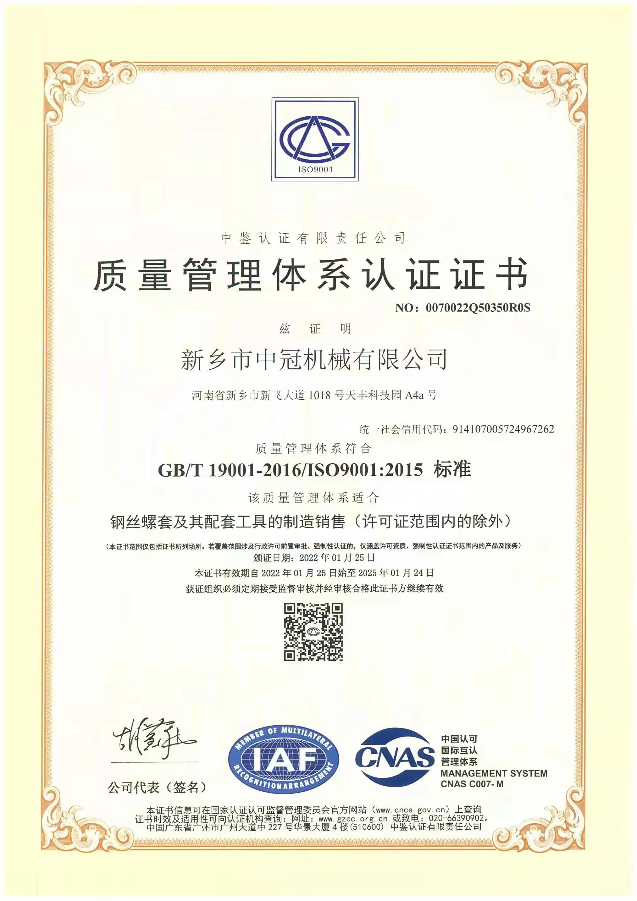 新鄉(xiāng)市中冠機械有限公司是從事鋼絲螺套產品及配套安裝工具技術研發(fā)、產品制造和銷售,并為客戶提供螺套使用全過程技術支持和服務的自動化制造型企業(yè)。